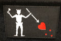 This is our new multi cam Blackbeards flag patch! It glows in the dark and reflects and is 3“ x 4” it comes with the hook and loop on the back to stick to your gear along with a hook and loop square in case you’re mounting it to something without it.