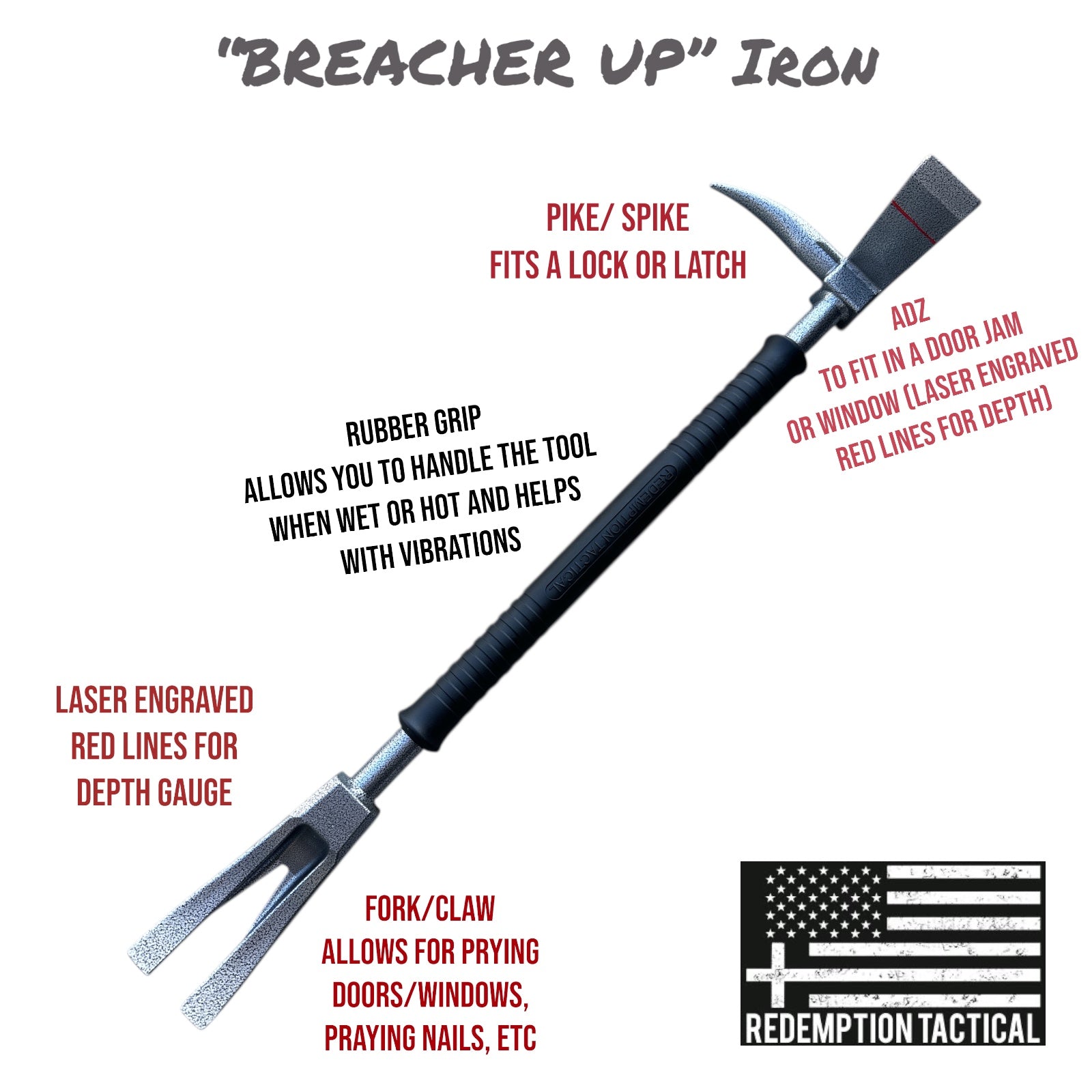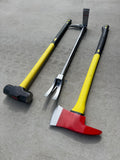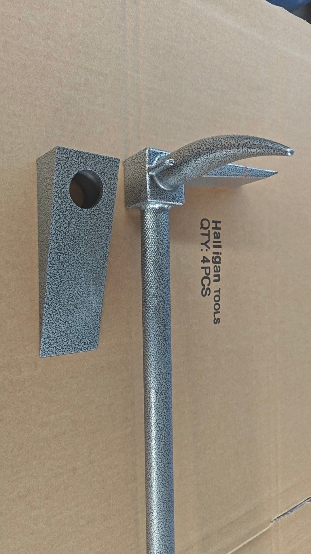 The Breacher Up Halligan Tool is a DROP FORGED SINGLE PIECE MADE FROM ALLOY STEEL. The ends are heat treated for maximum strength, toughness and wear resistance. It also comes with our green padded grip as seen in the photos to help with the vibrations and to grab it better if it’s hot.
