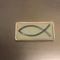 This is a Christian fish patch was said by 2x3 patch with Velcro on the back
