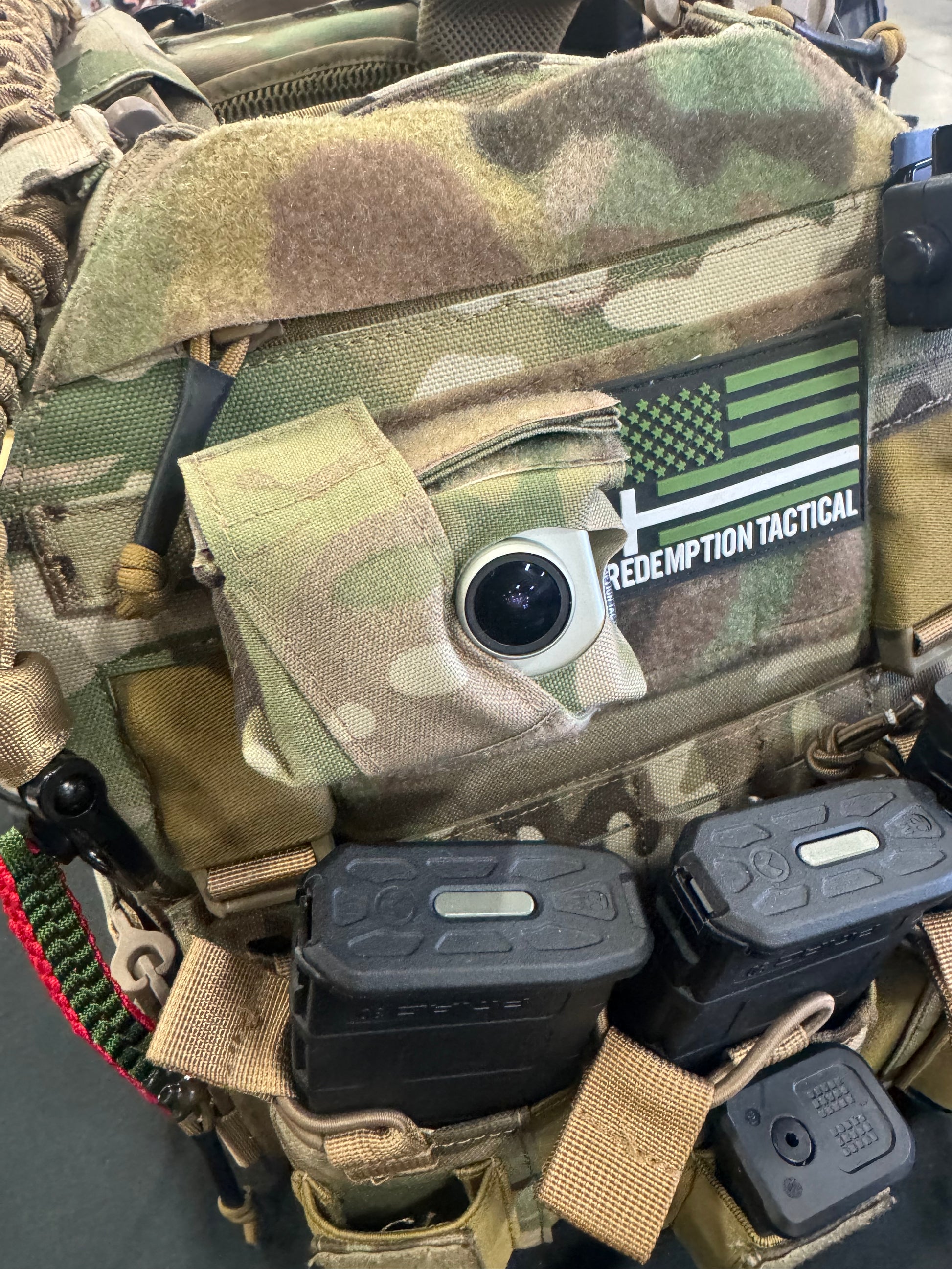 This Molle mounted pouch can hold your action cameras to do live Point of View camera footage.. mount it to your plate carrier Molle so it sees what you see..