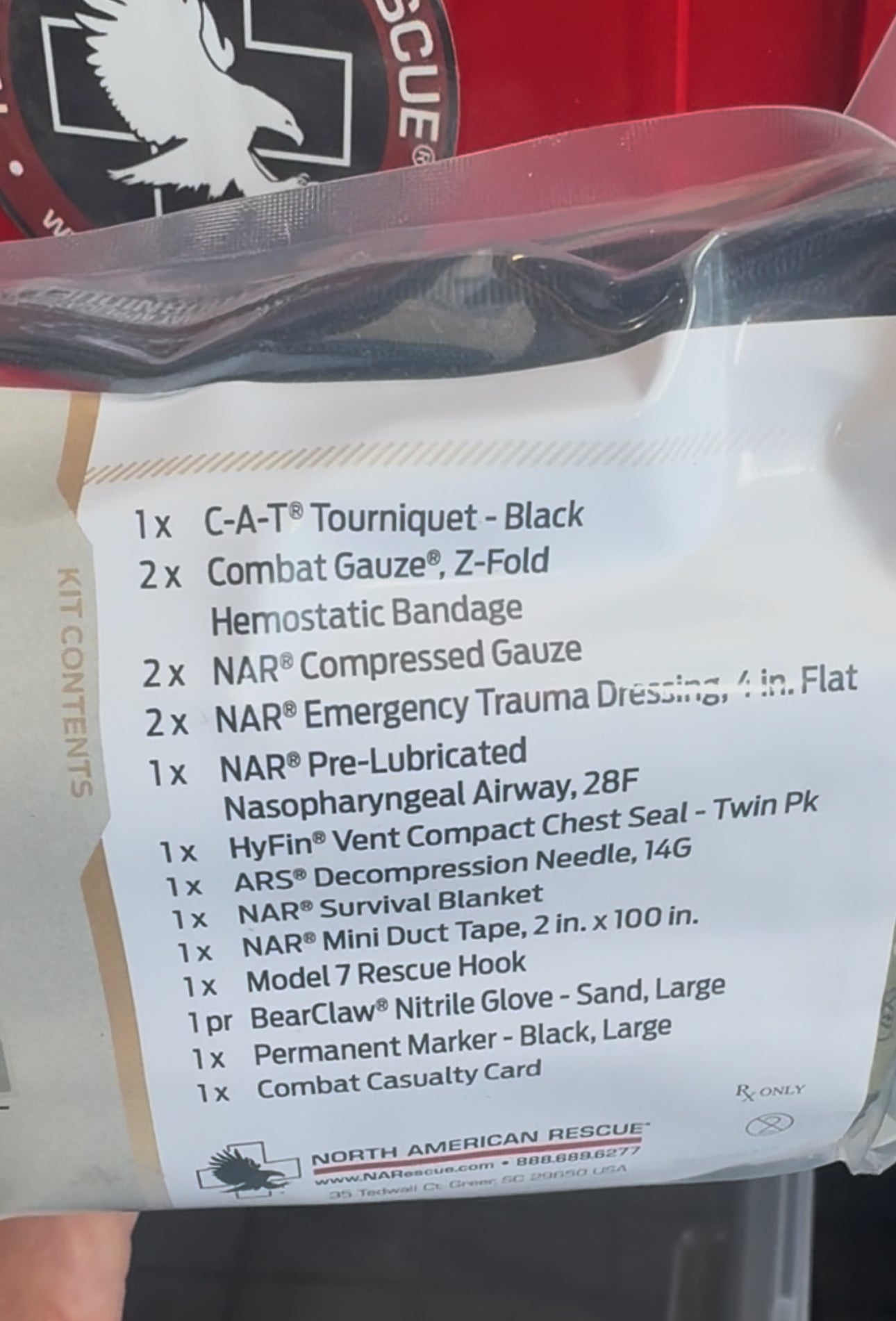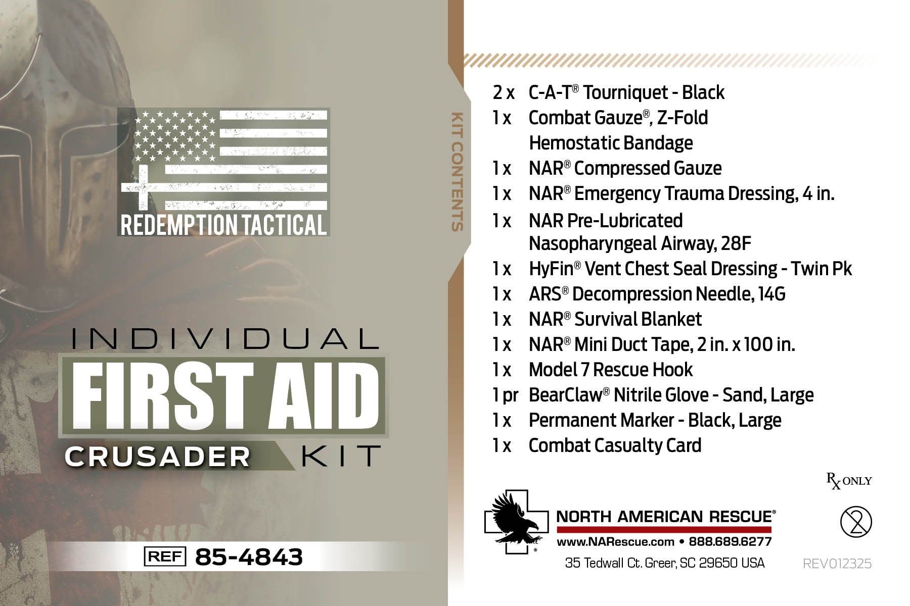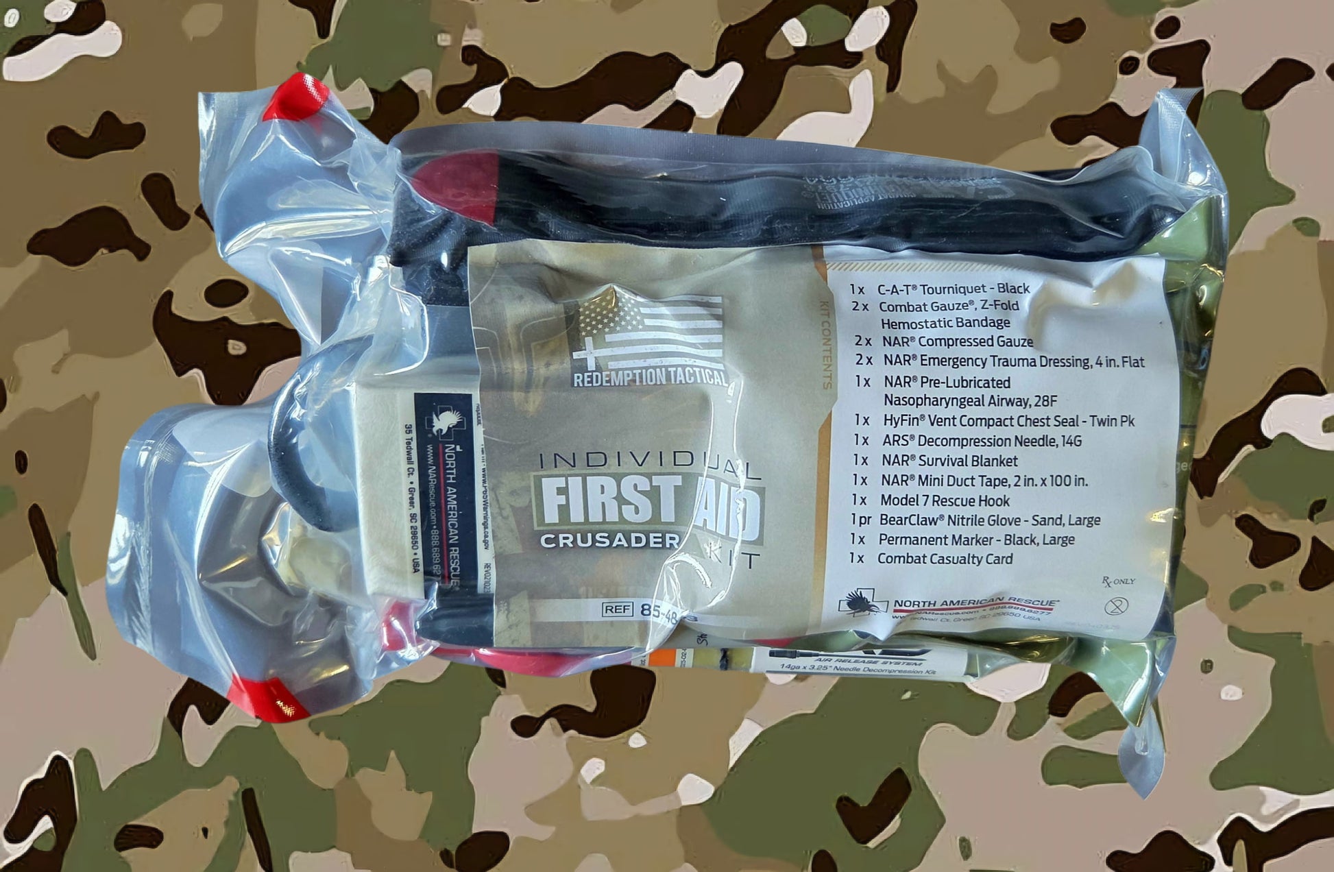 Please obtain the necessary training to use this kit properly. Redemption Tactical not responsible for how this kit is used. Always seek medical help and training from professionals. NORTH AMERICAN RESCUE® is a registered trademark by North American Rescue