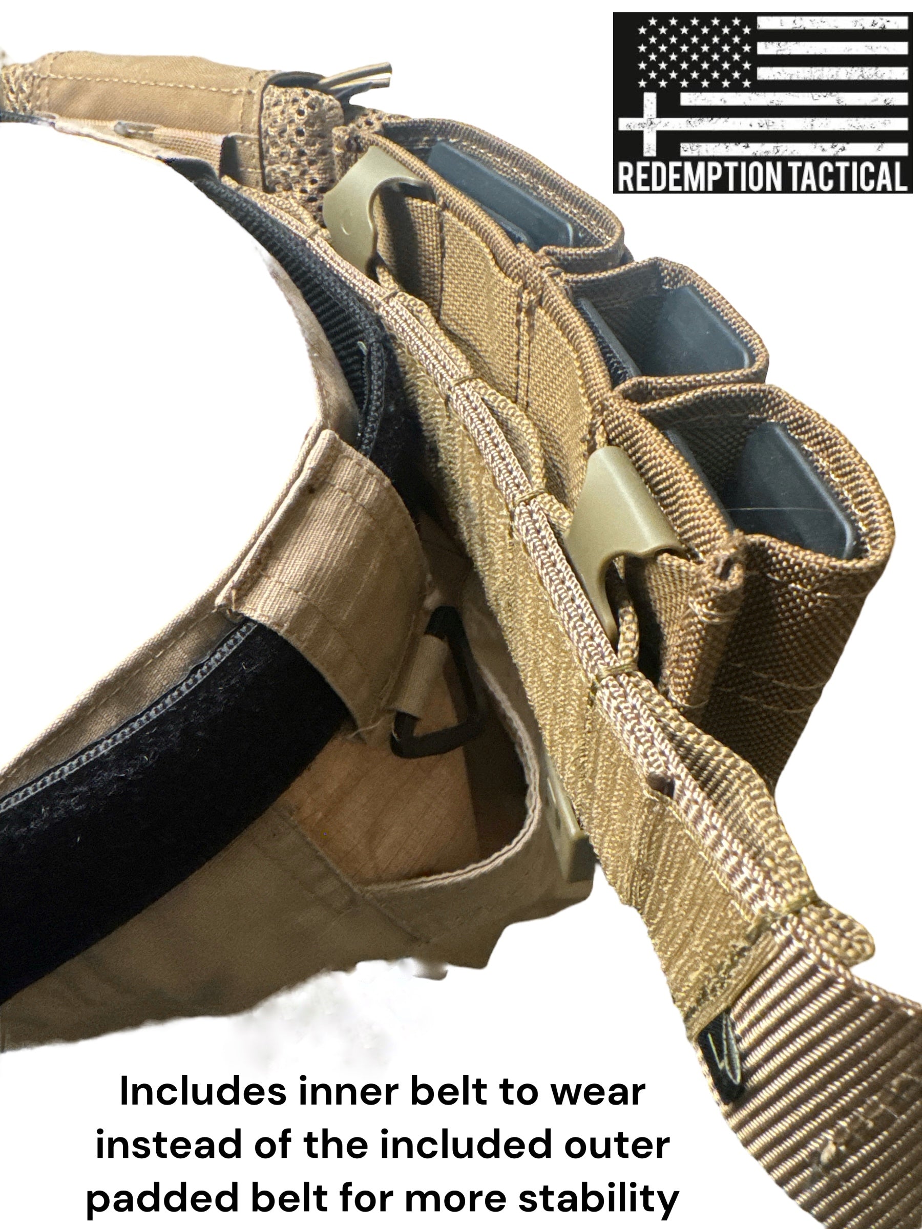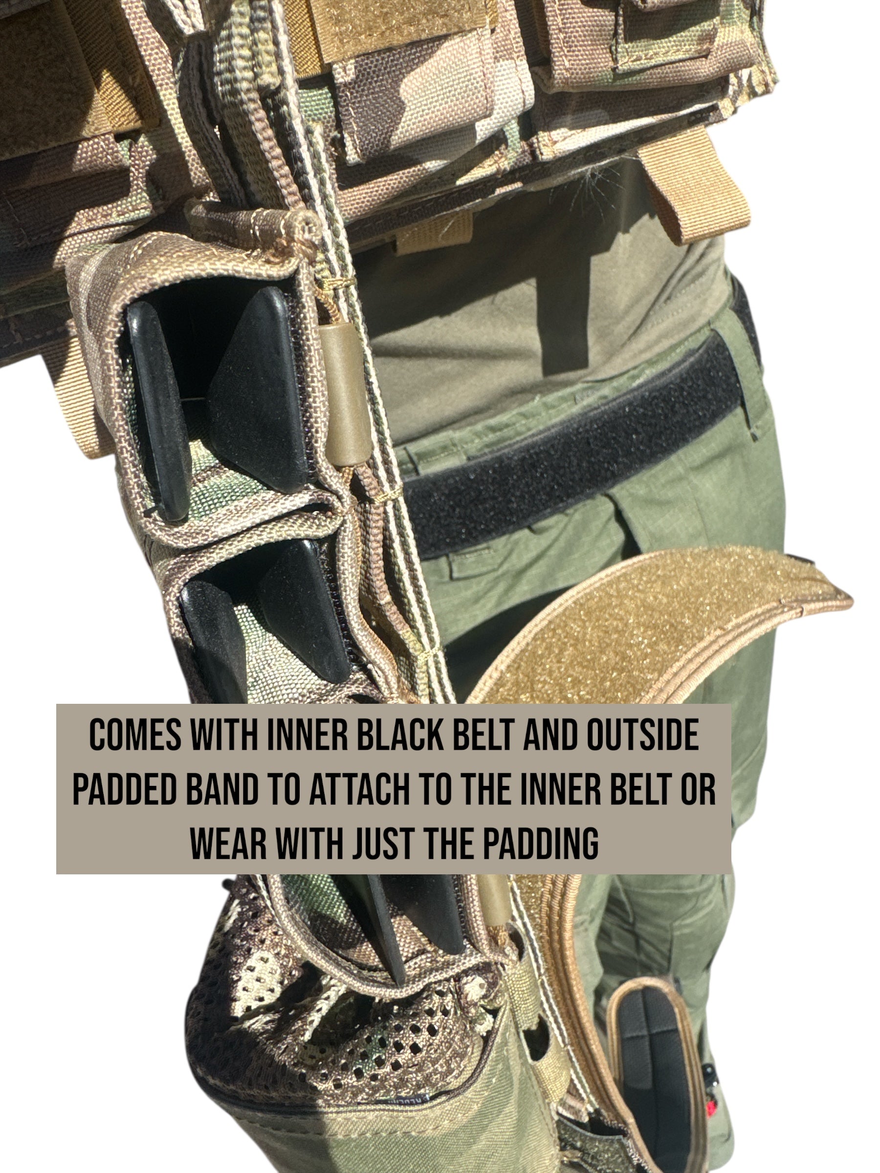 1. You can wear the inner loop threaded through your belt loops and the battle belt attaches right to it.