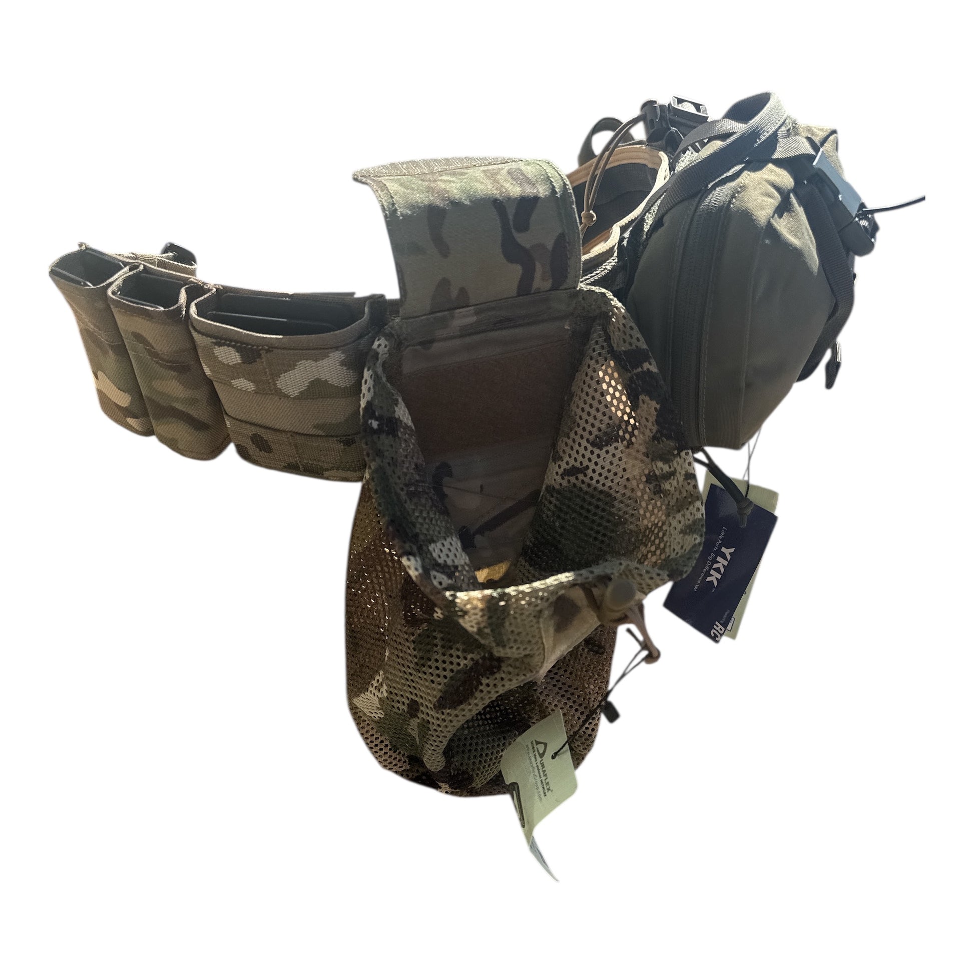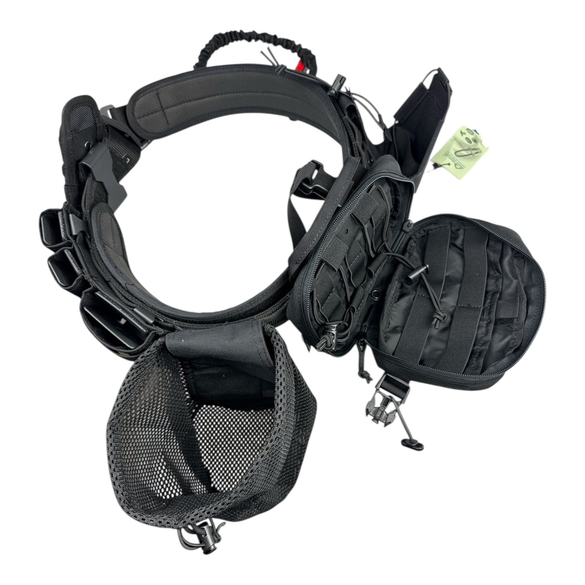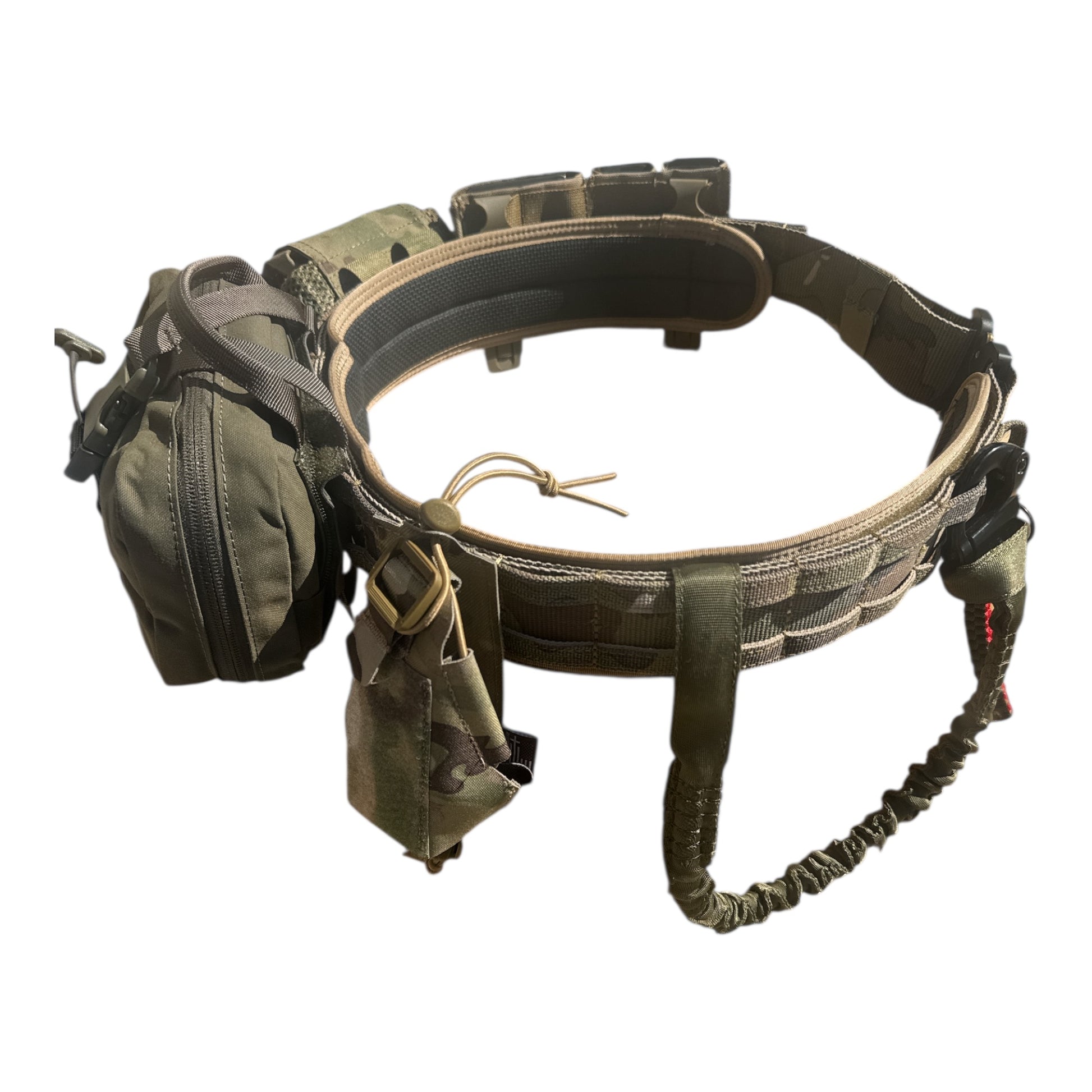 It has Molle traps to allow you to attach holsters, dump bags, first aid kits etc and it’s very thick mil-spec belt webbing to hold the weight without doubling over or sagging.