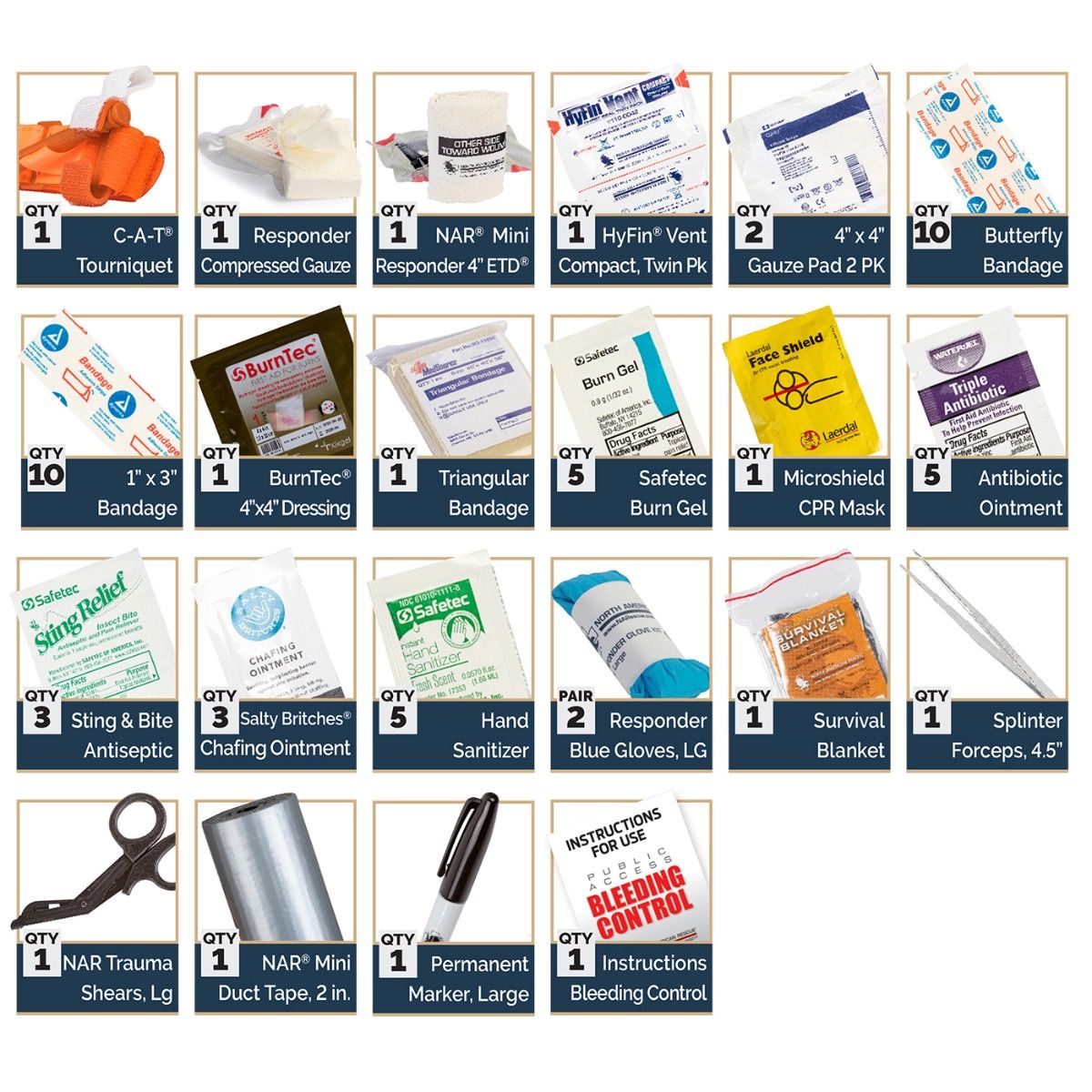 Every good adventure requires that everyone gets home safely. The new I-ROK XL (Individual Rugged Outdoor Kit) from North American Rescue is the perfect companion for any outdoor environment. The I-ROK XL contains the same essential first-aid supplies of the Standard I-ROK Kit with extra supplies to accommodate multiple injuries. These kits are designed to treat common injuries including basic injuries such as cuts, scrapes, bites & stings as well as the life-saving equipment to control major bleeding.