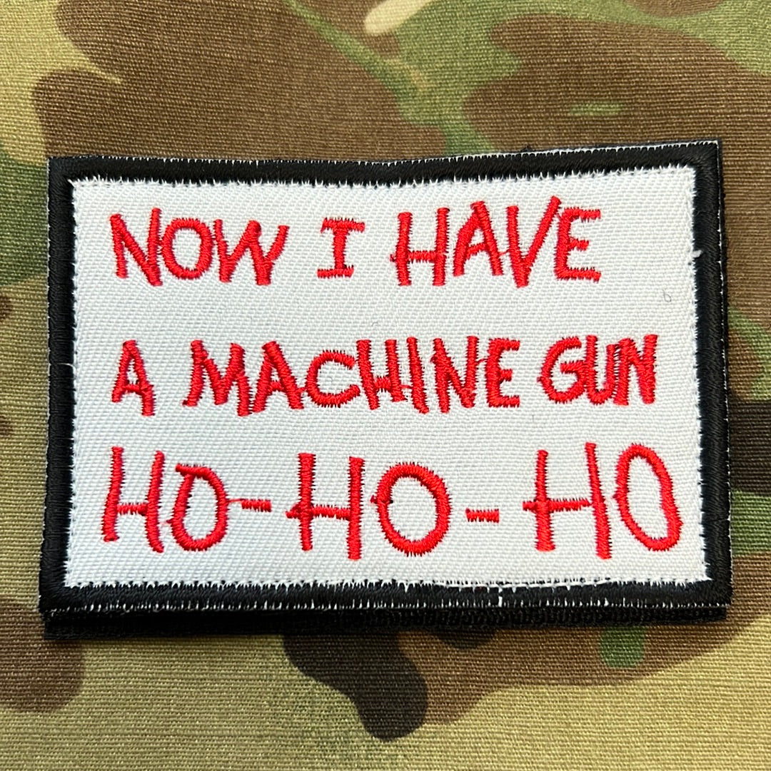 This patch is the “Now I Have a Machine Gun Ho Ho Ho” Patch. It is 2x3 inches and has hook and loop on the back to attach to your tactical vest or backpack or wherever you want. Comes with the hook and loop backing in case you need one to attach it to.