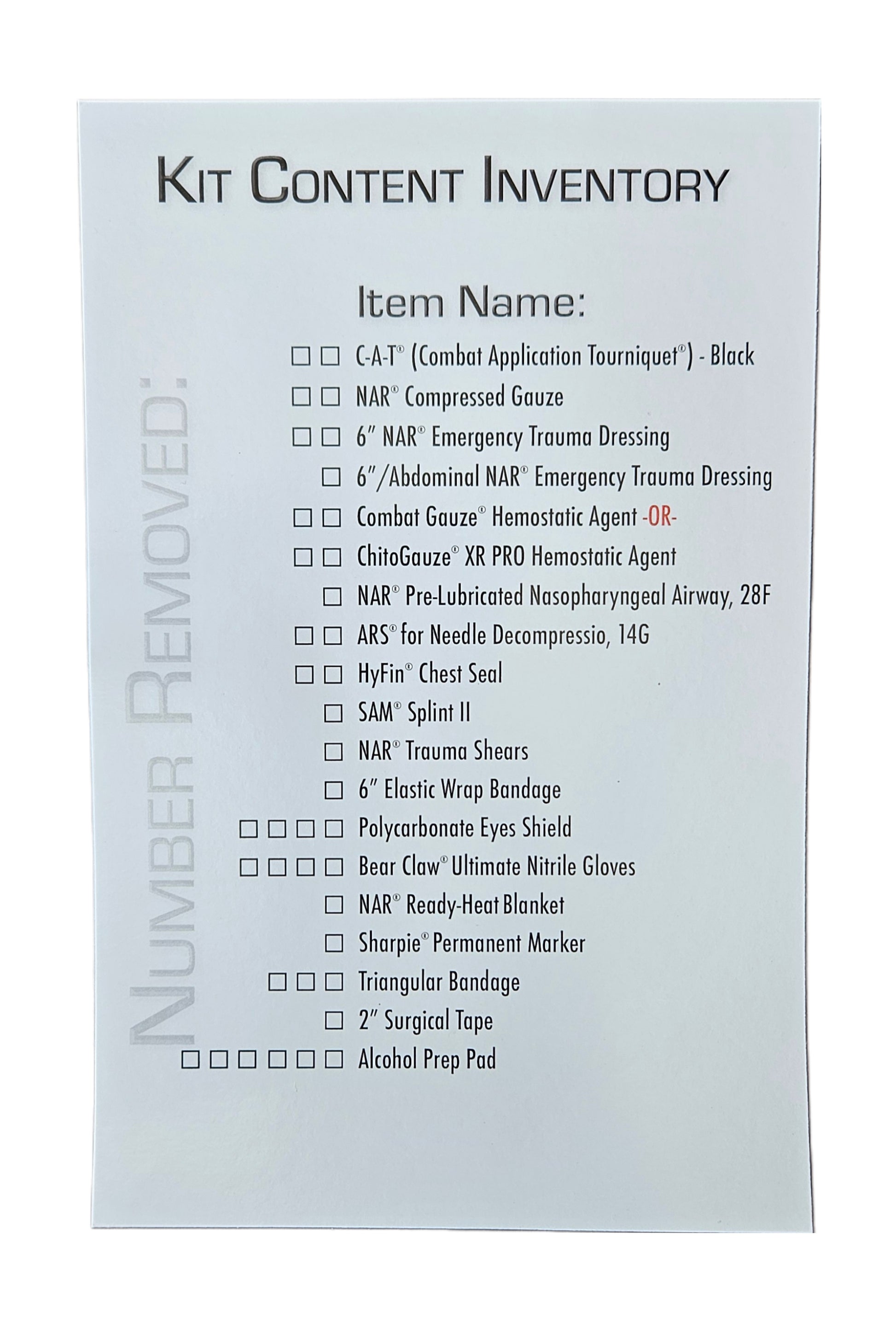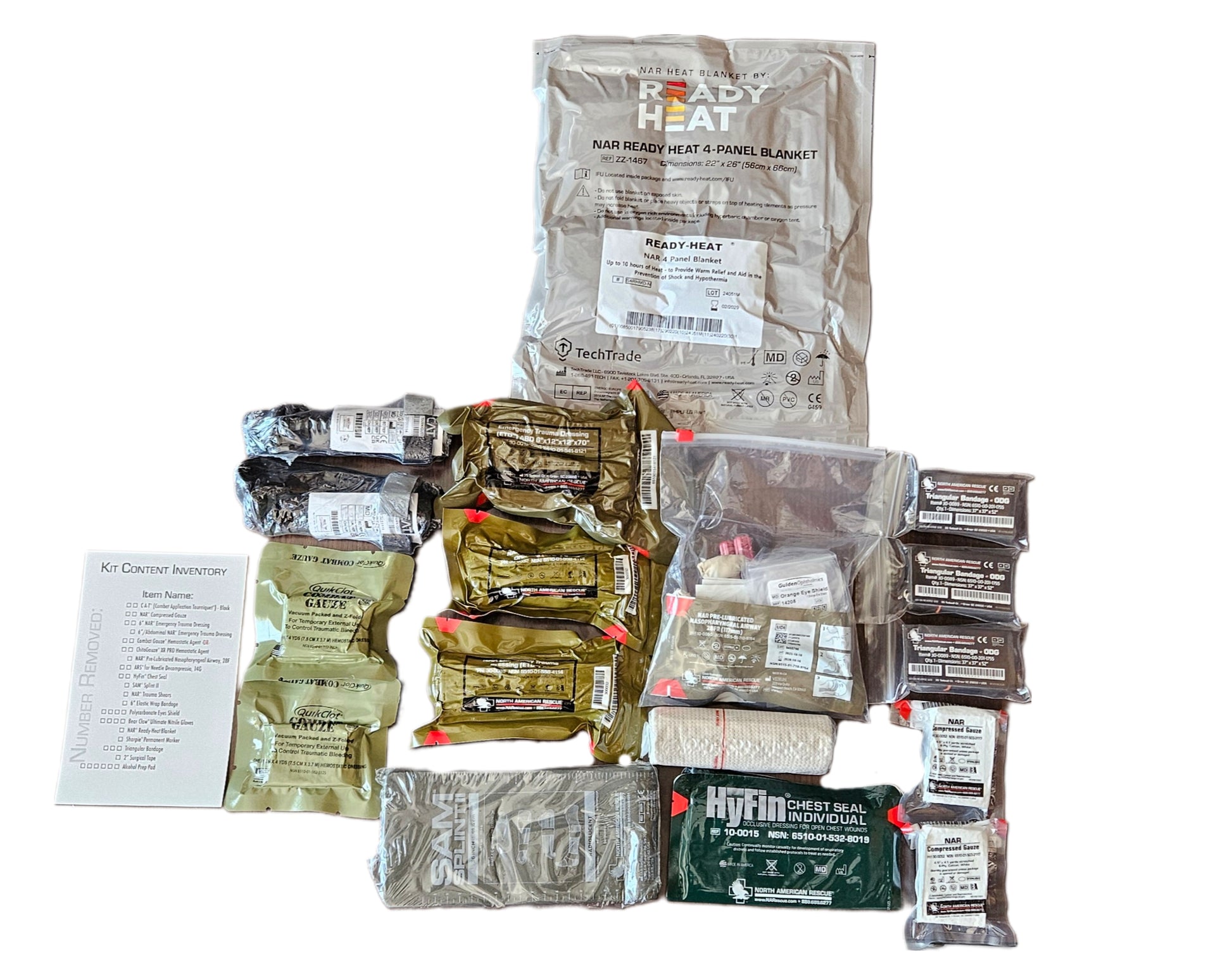 The Redemption Tactical Team Medical Kit is designed to treat 2-4 casualties. The (RTTM Kit)can hold 6 TQ'S, chest seals, chest decompression needles, nasal pharongenal airways, oral pharongenal airways, hemostatic bandages, stuffing bandages, compressive bandages & much more necessary equipment in order to save a life. This kit is designed to be a great starter kit for the average person or medic and can also be used as a Combat Medical Kit or a Mass Triage Kit. This Medical Kit's contents are provided by North American Rescue LLC. As an Authorized Dealer of NAR these medical supplies are all brand new never issued and are not Knock Offs supplies as some companies sell..