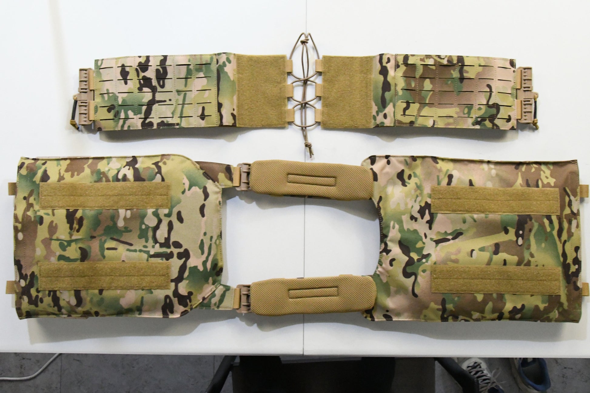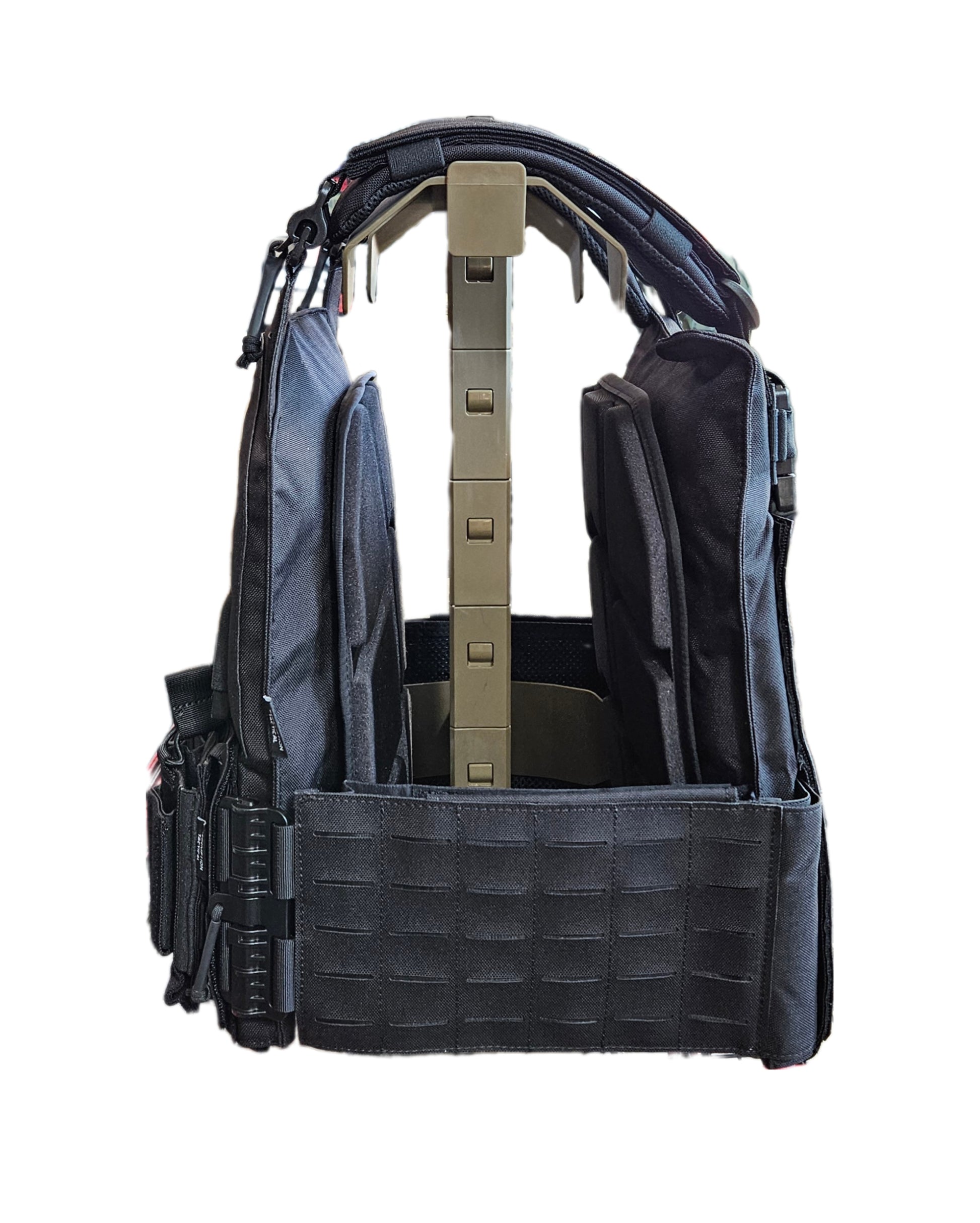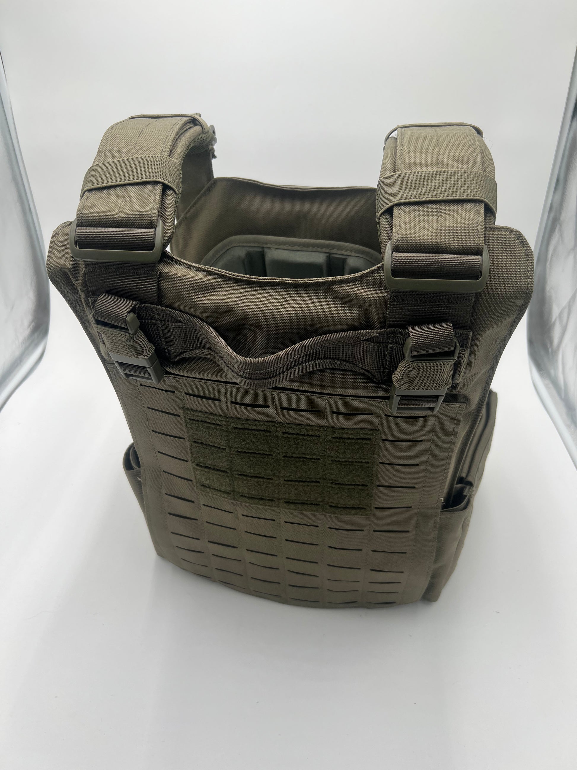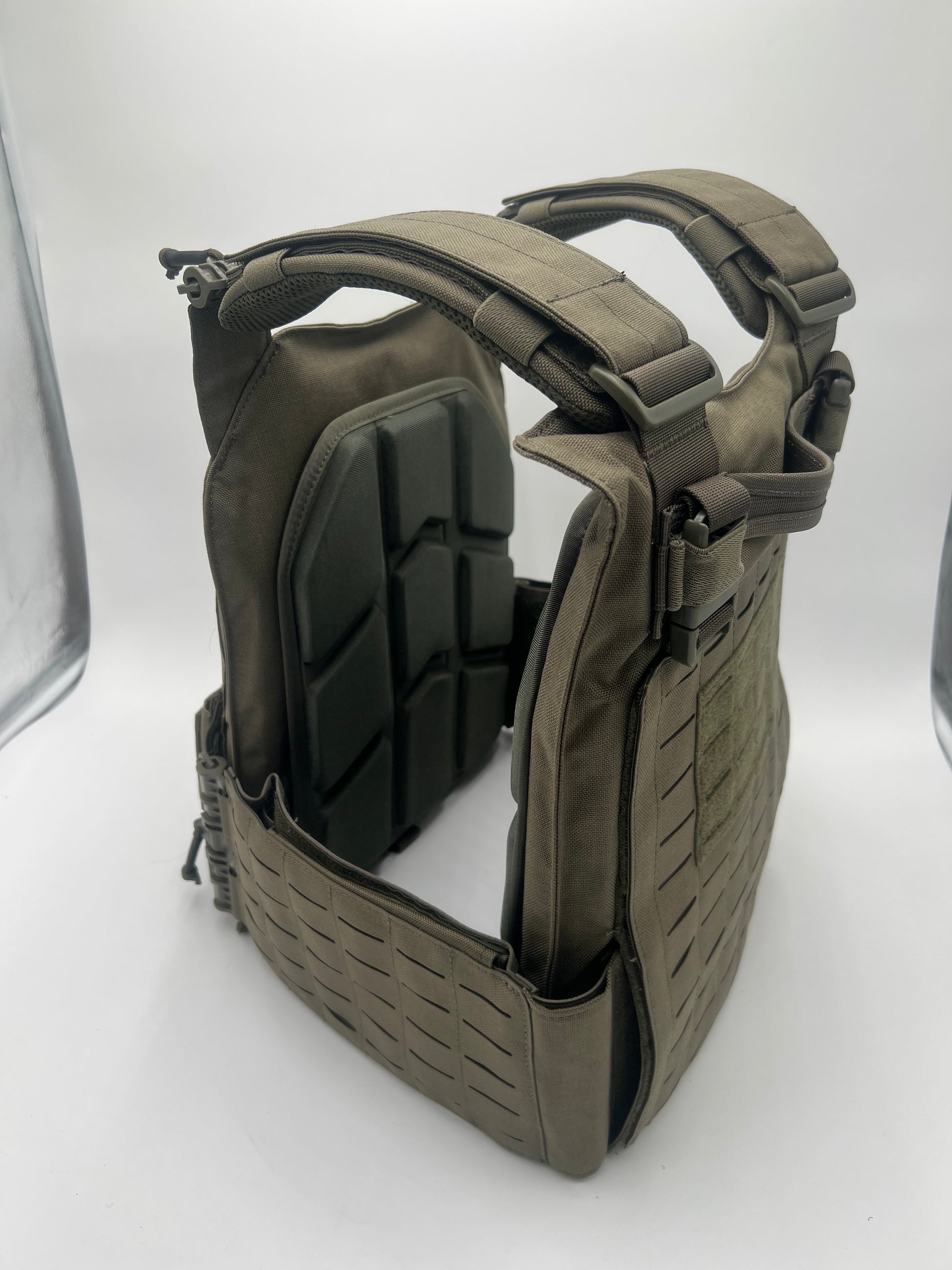 This vest has the new laser cut molle to allow gear to be held tighter to the vest as well.