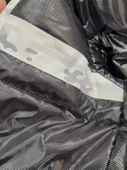 • Quilted layered stuffing with metalized polyester to keep the heat in.