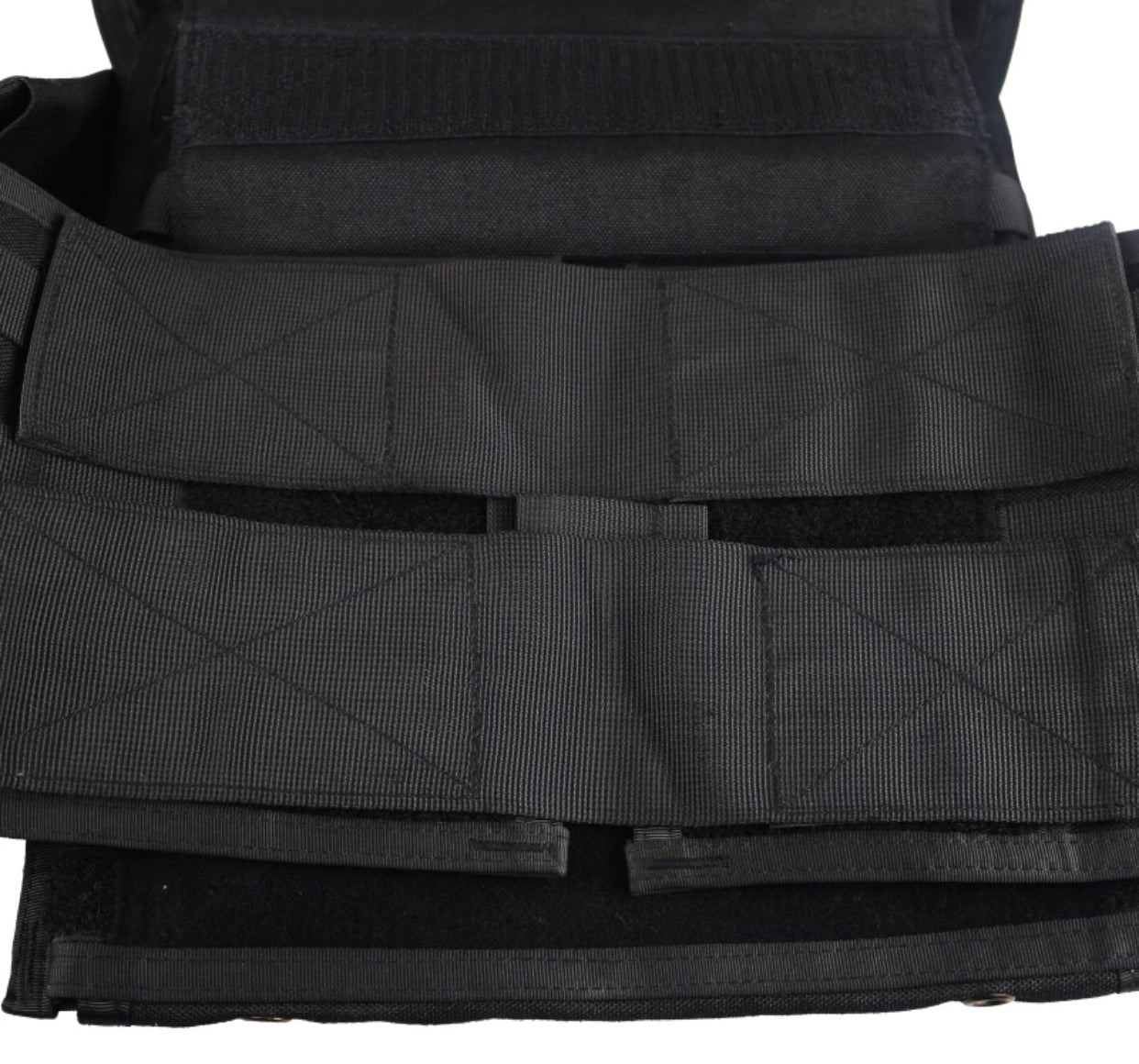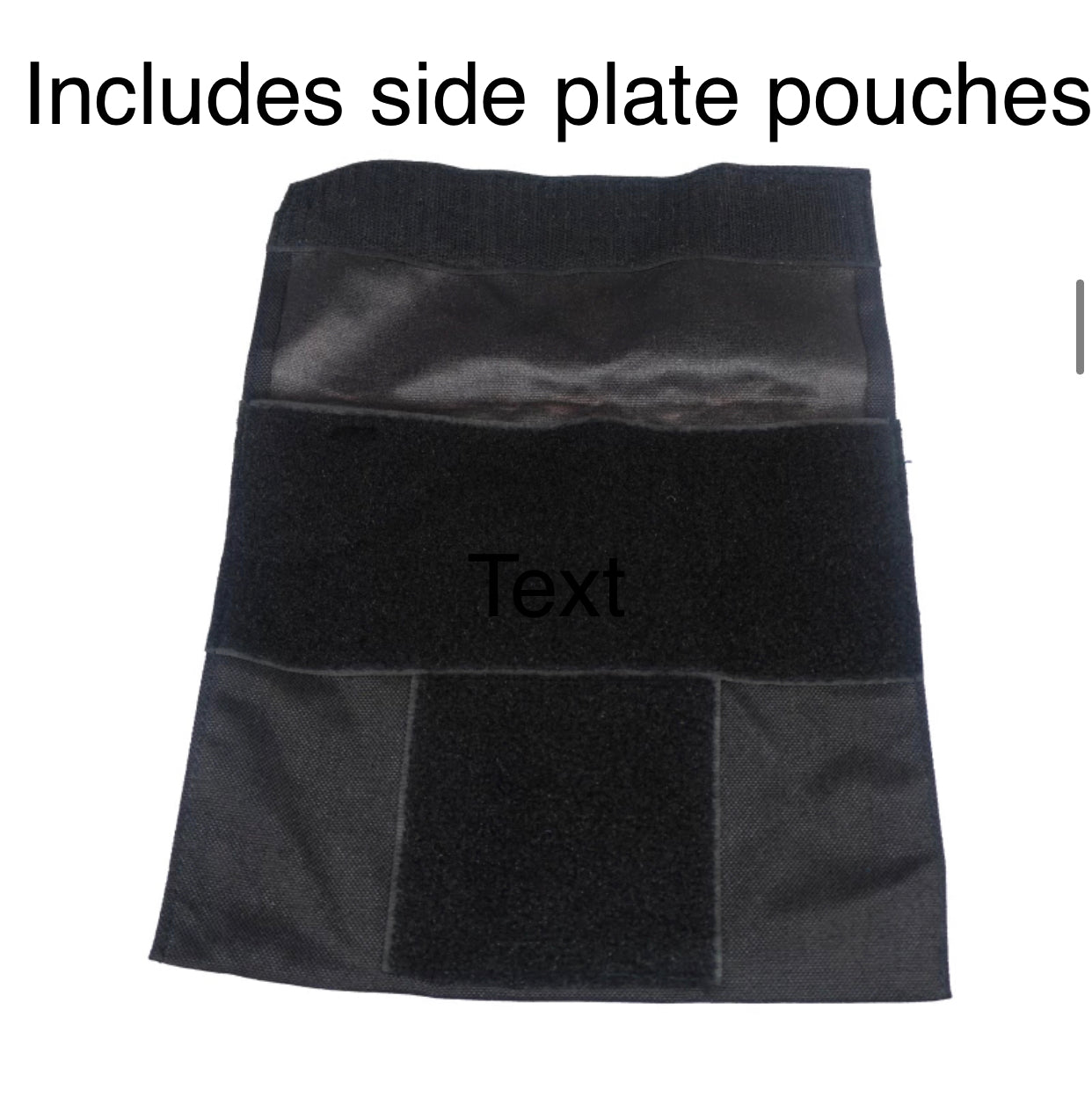 It has a cummerbund with side pockets for up to 6x8” plates.