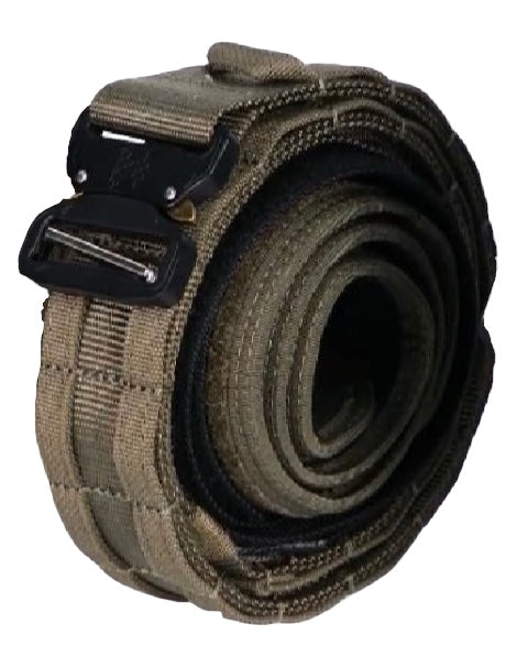 It has Molle traps to allow you to attach holsters, dump bags, first aid kits etc and it’s very thick mil-spec belt webbing to hold the weight without doubling over or sagging.