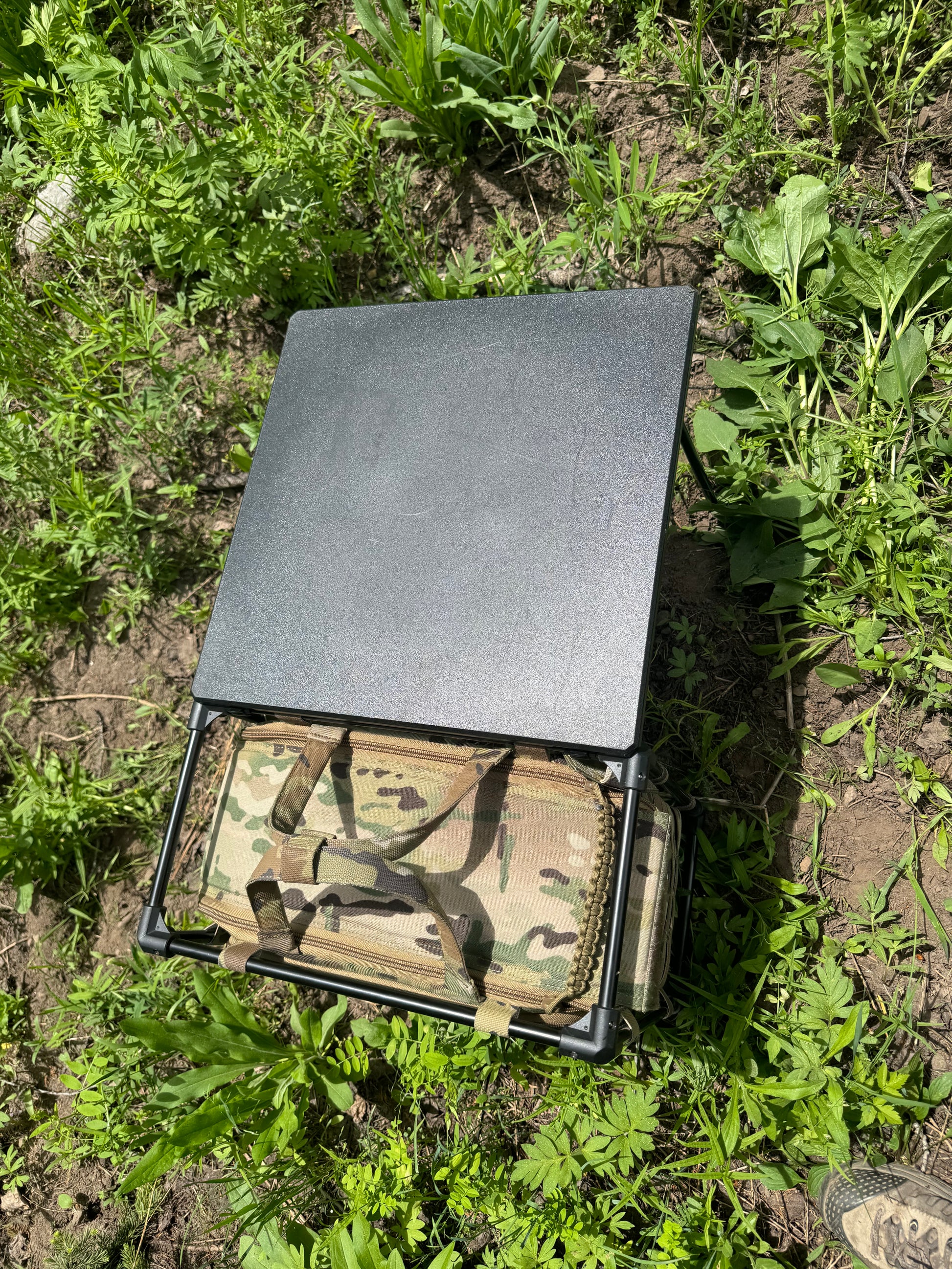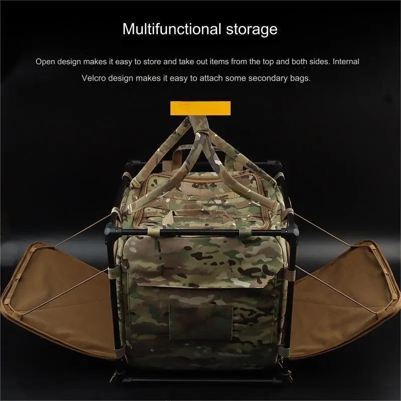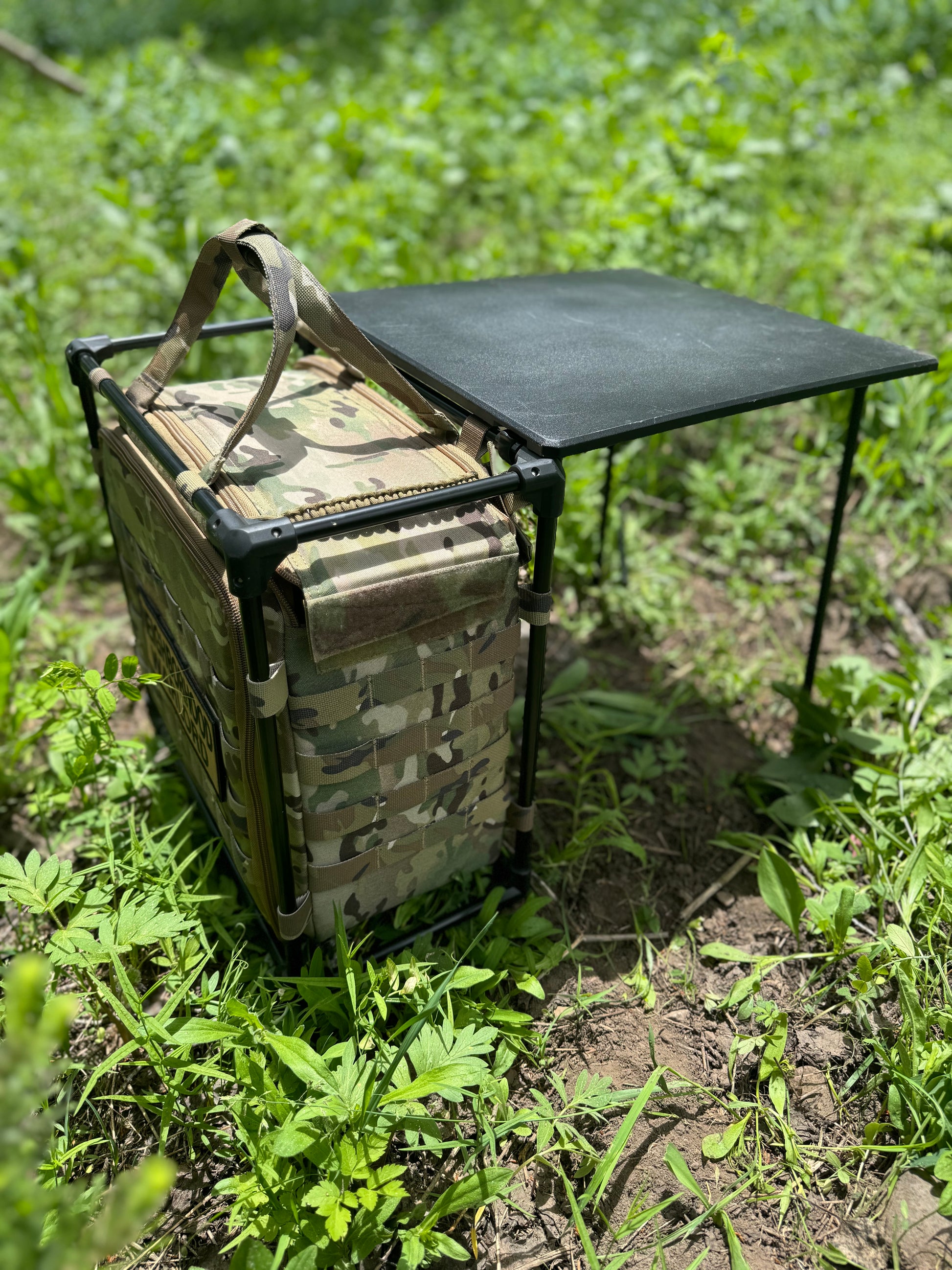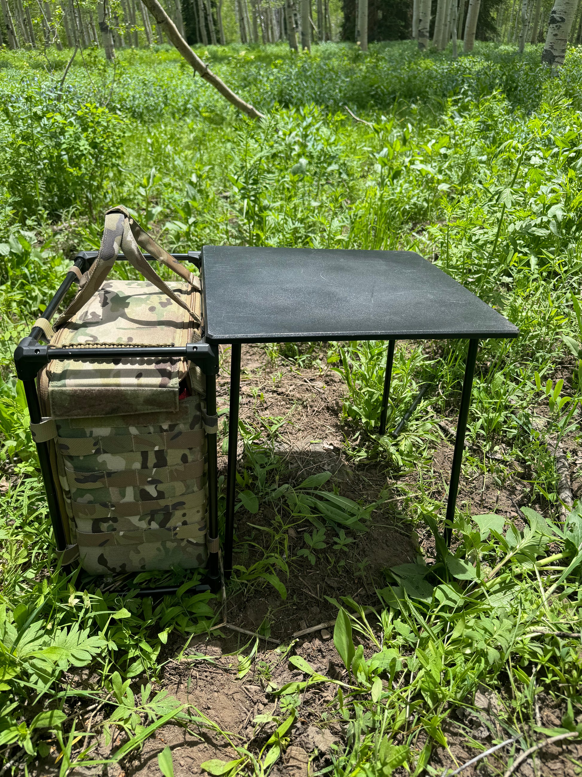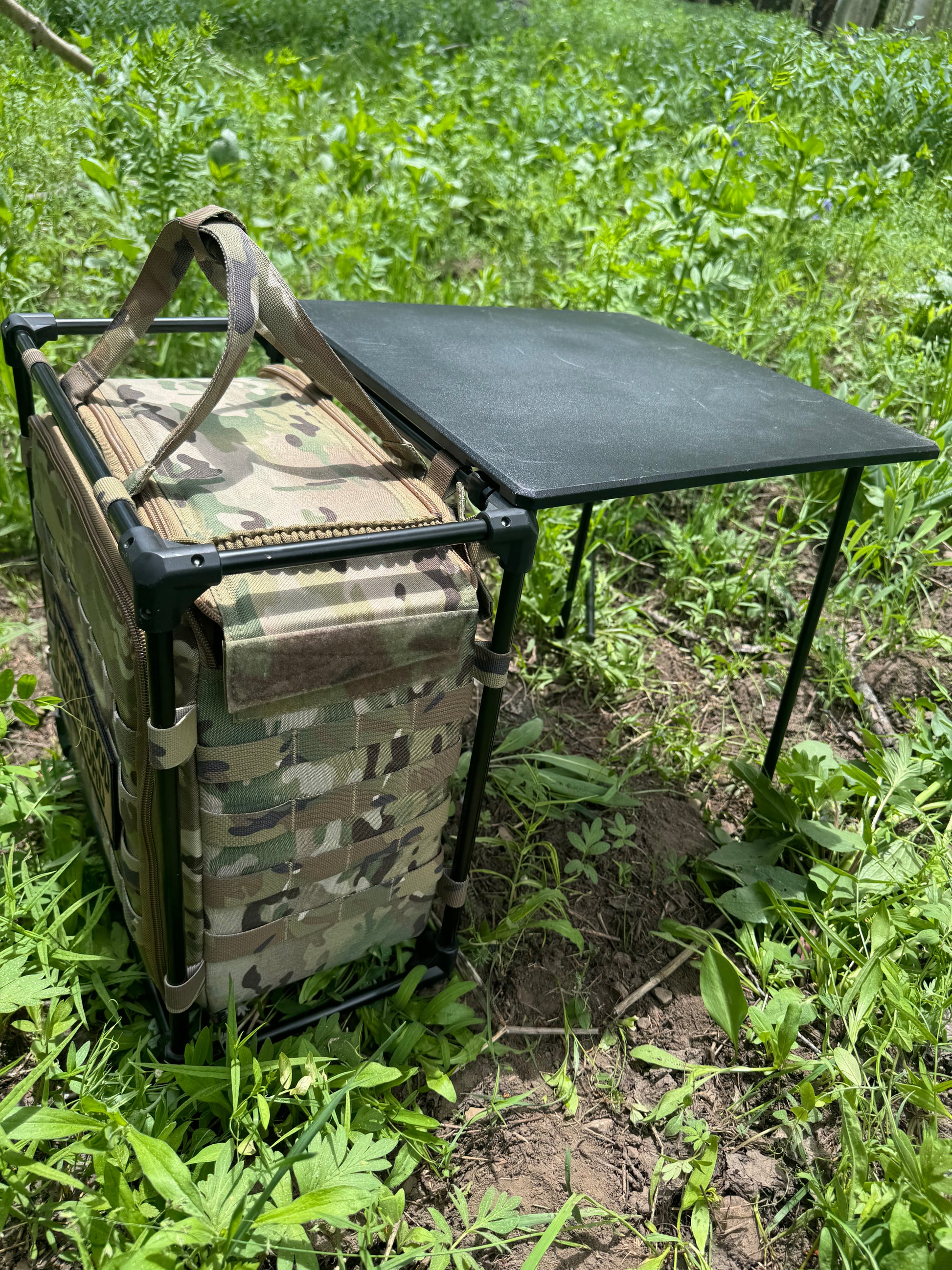 This TOC Table is great for setting up a Tactical Operations Command in the woods, at a crime scene or training remotely. It comes with the four legs stowed inside the bag to set it up detached from the bag or it can fold out quickly from the side and have two legs attached. It has a large pocket on the wide or can be opened from the top. It can store a laptop, battery pack, range gear etc.